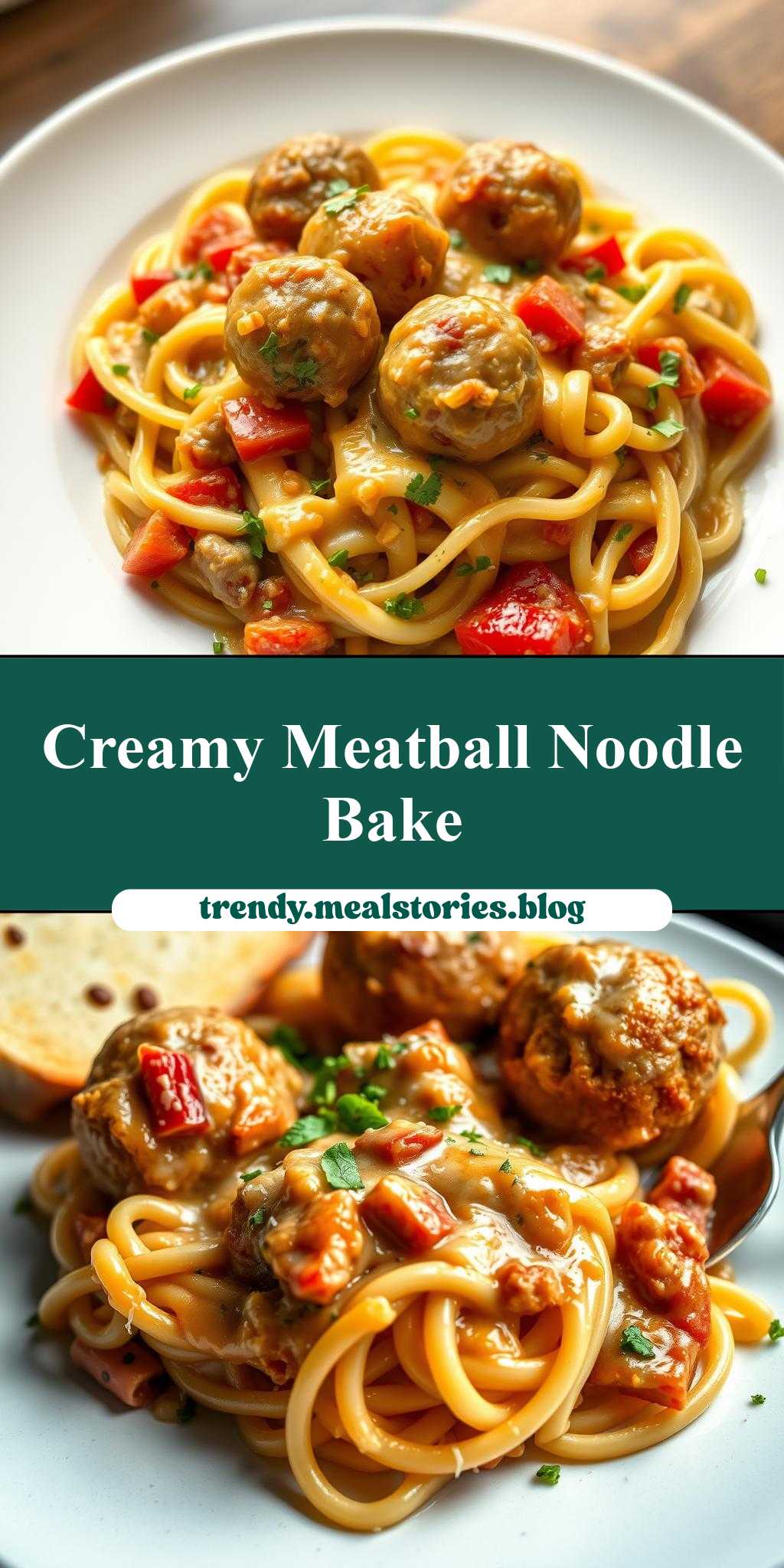 - Step 4: In a large baking dish, create a layer of noodles, followed by a layer of meatballs, and then pour some of the creamy sauce over them. Repeat this process until all ingredients are used, ending with a layer of sauce on top. Sprinkle additional cheese if desired. Bake in the preheated oven for about 20-25 minutes, or until the top is golden brown and the sauce is bubbly.