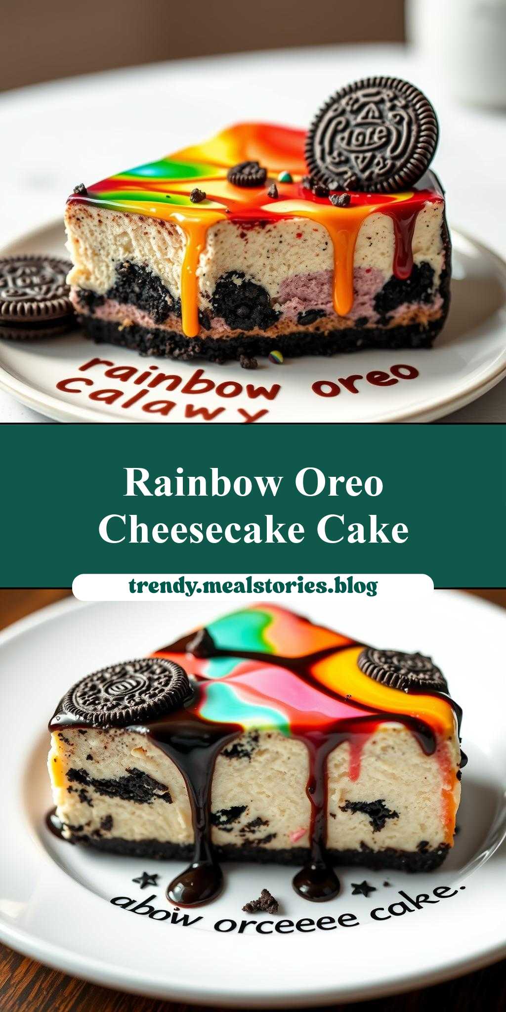 A vibrant and delicious dessert combining cheesecake, Oreos, and rainbow colors, perfect for special occasions or everyday delight.