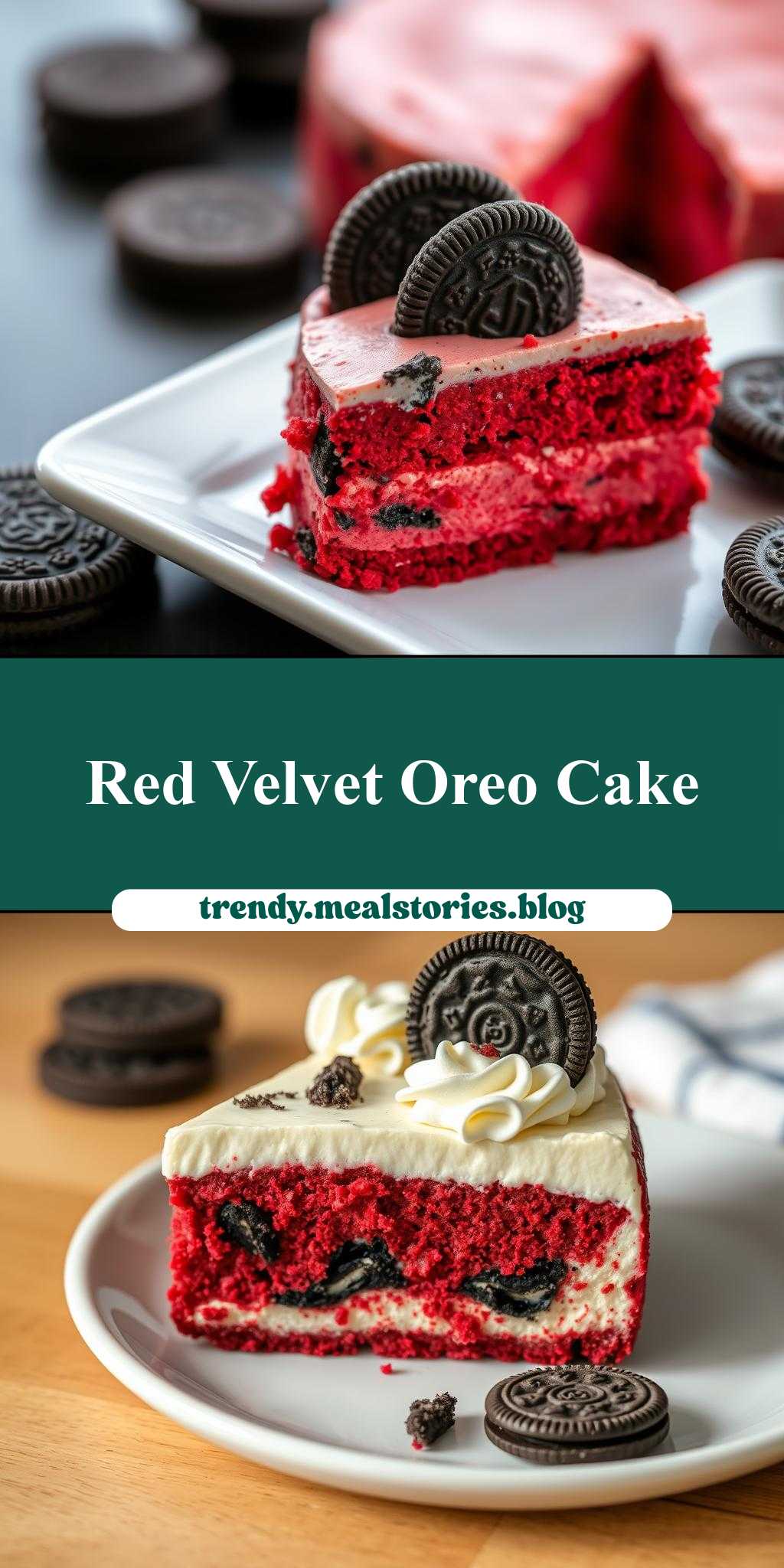 A rich and decadent dessert that combines the flavors of red velvet cake and cheesecake with the crunch of Oreo cookies.